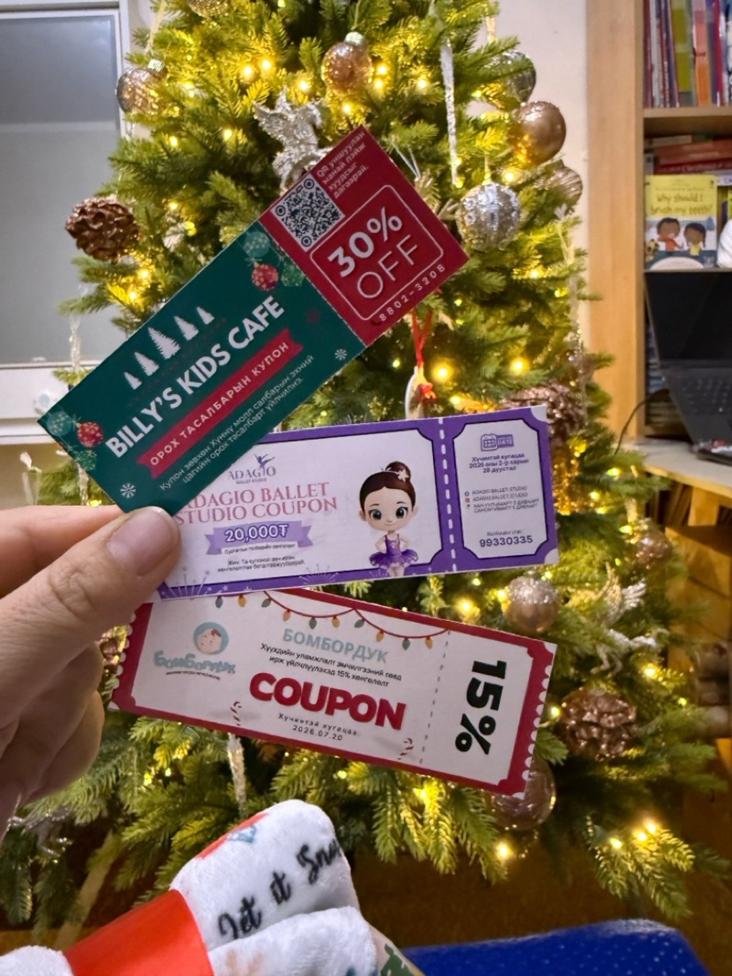 Хамтрагч байгууллагуудын хөнгөлөлтийн купон: Bomborduk baby care хүүхдийн уламжлалт эмчилгээний төвд ирж үйлчлүүлэхэд 15% хөнгөлөлтийн эрх, Adagio ballet studio 20’000₮-ийн төлбөрийн хөнгөлөлтийн эрх, Billy's Kids Cafe -Хүннү молл салбар орох тасалбарын үнэ 30% хямдрал